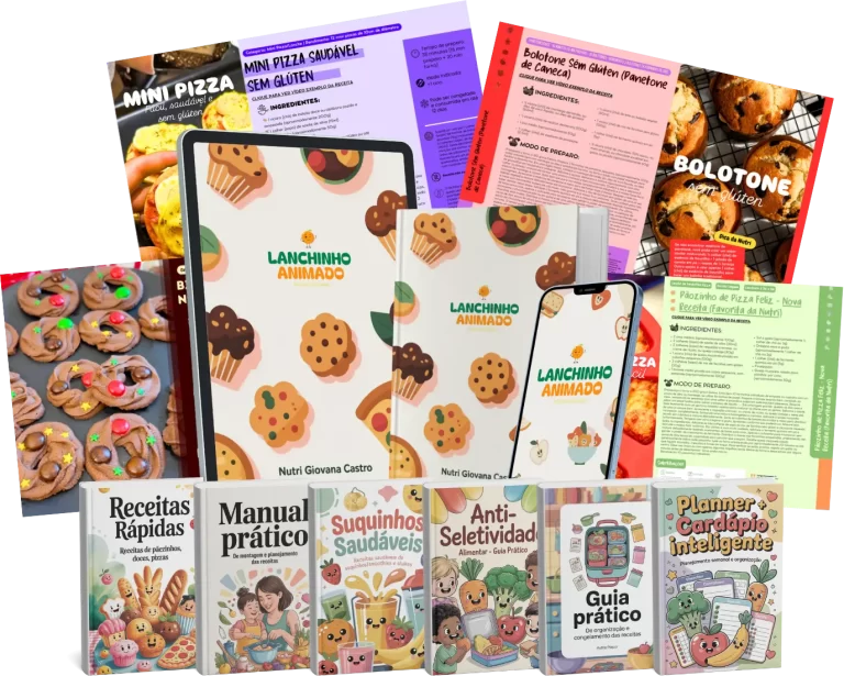 Com o Guia Lanchinho Animado, você recebe mais de 200 receitas que seu filho VAI querer comer — que são prontas de forma rápida, deliciosas e nutritivas, direto da sua cozinha!
